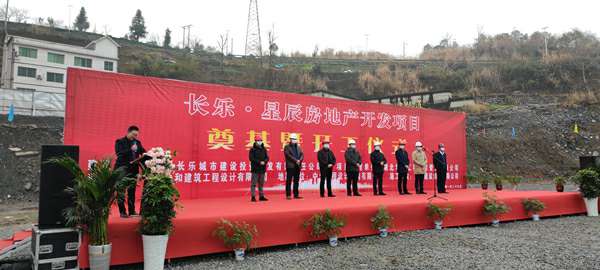 2021年1月26日上午,由开云网页版登录页面-开云(中国)承建的长乐▪星辰住宅项目奠基暨开工仪式在项目现场热烈举行。湖北省宜昌市五峰土家族自治县住房和城乡建设局副局长陈白华、县质量安全监督站站长邓简涛、开云网页版登录页面-开云(中国)五峰长乐▪星辰项目经理王国云,项目参建各方及新闻媒体共40余人出席。宜昌市长乐城市建设投资开发有限责任公司总经理刘鹏主持。